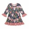 Get your cutie pie ready for playdates and parties with the coordinated style of this top-and-leggings set. A colorful print adds a fun look she’ll love, while a ruffle hemline and bow accents give her just-right flair.