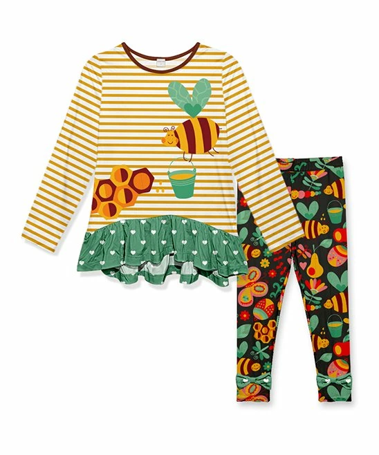 Outfit your little one for the day in this comfy coordinating tunic and leggings set. Charming graphics set the look abuzz with sweet personality.