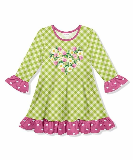 She’ll love the diversity of this contrasting dress that features bold prints fashioned with a ruffle finish. Its soft and stretchy fabric allows for easy wear and comfort throughout her busy day.