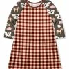 Dressing up becomes a comfy affair when she’s dolled up in this lightweight frock featuring a colorful print framed by contrast raglan sleeves that make it a fun pick for play dates and parties.
