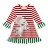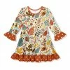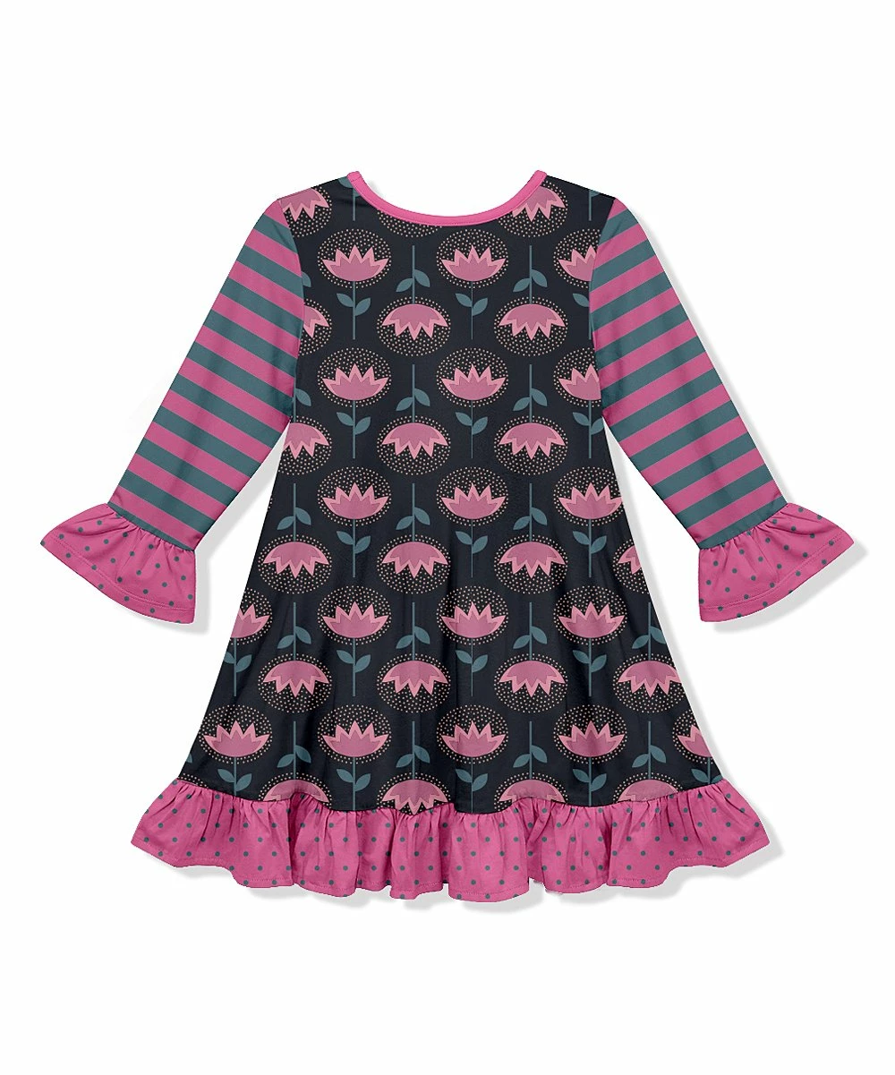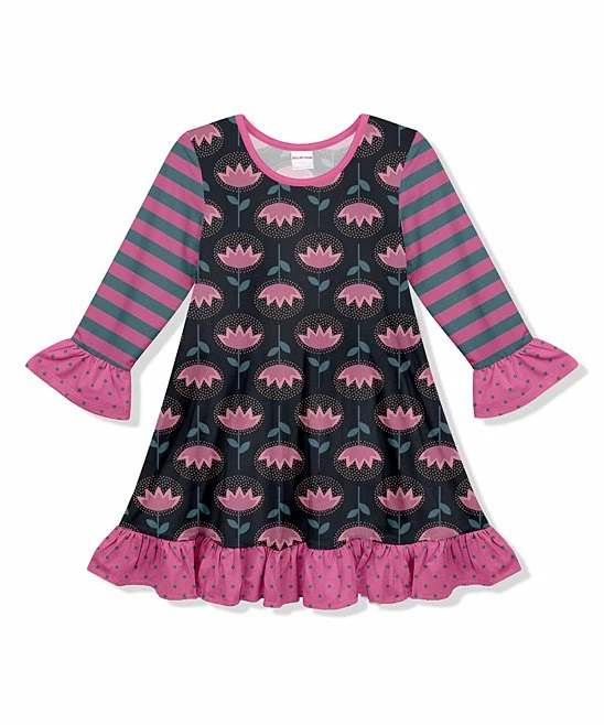 She can strut her bold style in this event-ready shift dress featuring an eye-catching pattern and ruffle accents on the sleeves and hem.