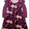 This angel-sleeve dress features an empire waist and a lively mix of patterns.