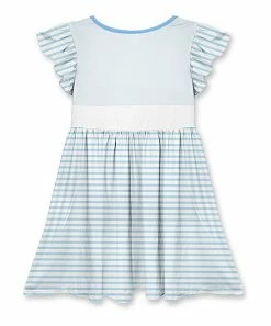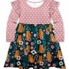 Tiny fashion gurus can stay stylishly comfortable in this printed flutter-sleeve dress featuring a bow-accent waist and gentle dose of stretch.