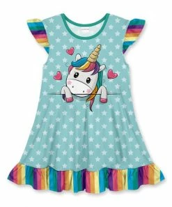Brand new ๐Ÿ”ฅ Discount ๐Ÿ˜‰ Penelope Plumm Teal & Rainbow Star Unicorn Angel-Sleeve ๐Ÿ‘— ๐Ÿ‘— Dress – Toddler & ๐Ÿ‘ง Girls ๐ŸŒŸ ๐Ÿ˜€