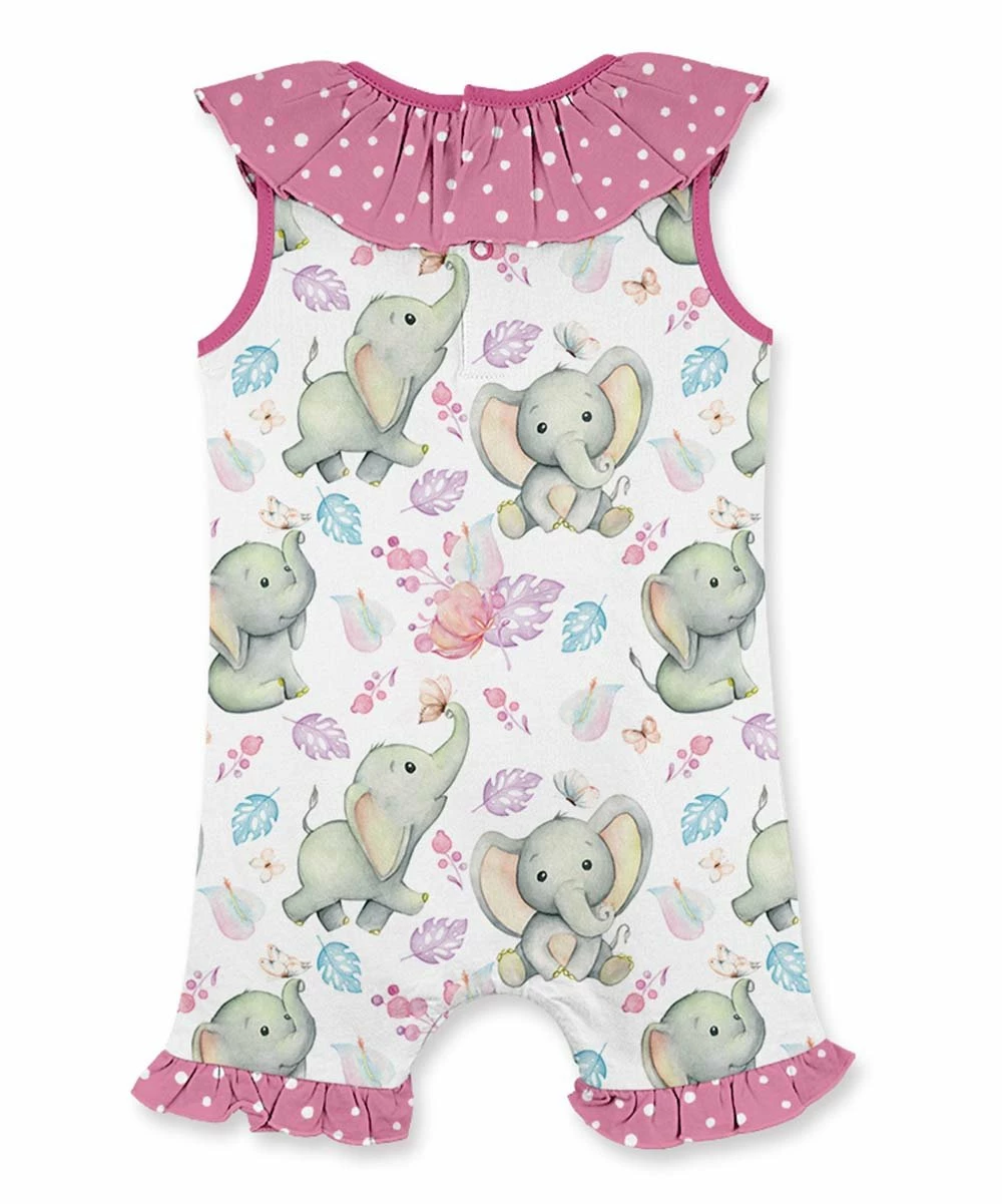 Get them ready for a day of play with this sweet romper that has a ruffle collar and adorable print.