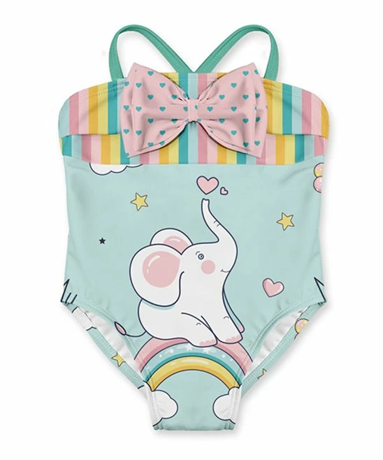 Keep your little cutie comfortable as she splashes and plays the day away in this charming one-piece swimsuit featuring a whimsical print and pretty bow for a sweet style you’ll both adore.