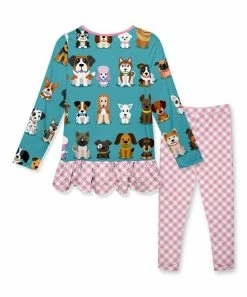 - Includes turquoise and pink gingham dogs ruffle tunic and pink gingham bow leggings (two pieces total)