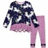 Correlating colors and prints make for an easy all-in-one ensemble when they add this stretch-blend tunic and leggings set to their rotation.