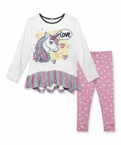 This ensemble features a ruffled tunic and lightweight pants crafted with darling design.