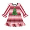 Contrasting patterns and prints mix and match on this dress featuring a ruffle hem and cuffs for twirl-ready style.
