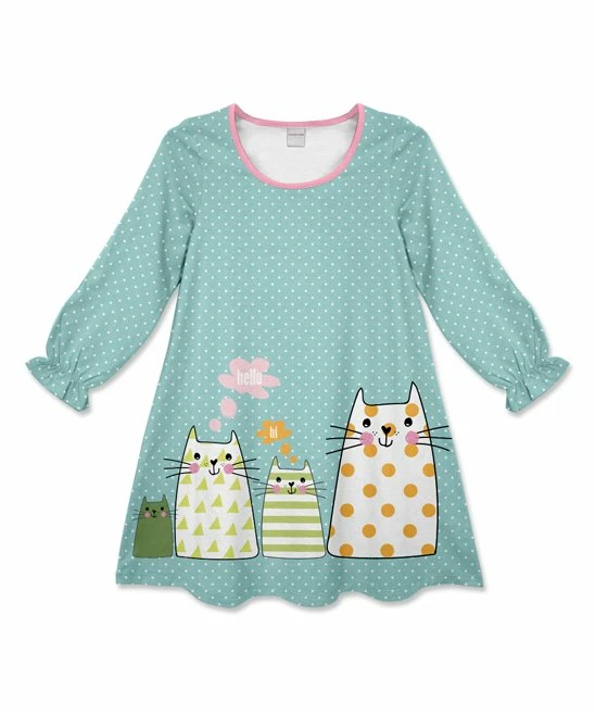 This sweet shift dress is crafted with easy-moving stretch-enhanced fabric and features a playful pattern.
