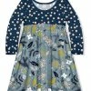 A babydoll dress finished with a free-spirited print and long sleeves for comfy coverage. Soft-stretch fabric that moves with them through their daily adventures.