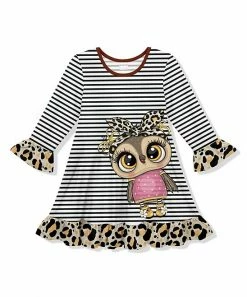 Their playful style shines through in this stretch-touched A-line dress trimmed in ruffles and boasting a whimsical print they’ll adore.