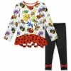 - Includes red and white stripe ladybug ruffle-hem tunic and red ladybug bow-accent leggings (two pieces total)