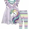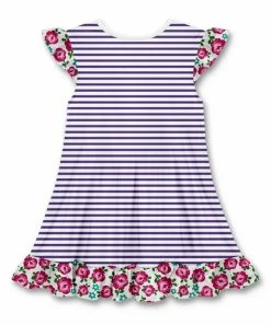 A flared, contrasting ruffled hem and adorable angel sleeves accent this dainty dress with delightful detailing, while lightweight stretch-infused fabric makes sure little ones stay comfy throughout all-day play.