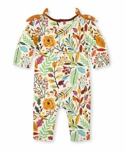 Tie details complement this long-sleeve playsuit made with stretch-enhanced material and bottom snaps.