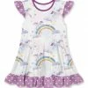 Outfit your little angel in this adorable dress trimmed in sweet ruffles and featuring a flowing skirt. Stretch-blend fabric makes it a comfy pick for playdates and school days.