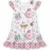 Enliven their wardrobe with this patterned set cut from stretchy fabric that includes a ruffle-hem tunic and versatile bow-accented leggings.
