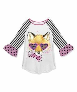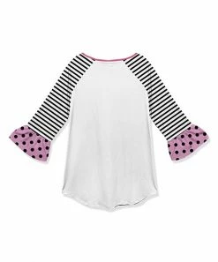 Your fashion-conscious kiddo will love to wear this soft and stretchy raglan tunic that’s dressed up with ruffle sleeves.