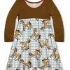 Sweet babydoll dress with a vibrant floral pattern and stretch-blend fabric for all-day comfort.