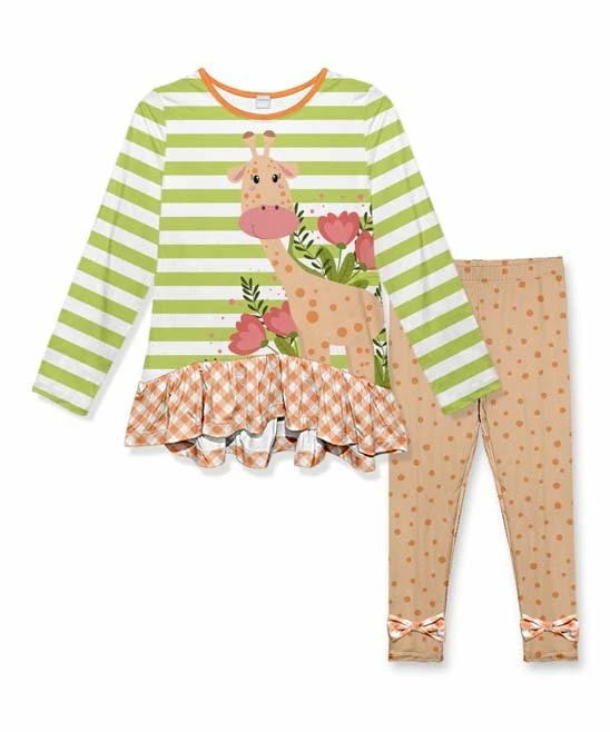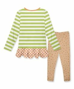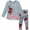 This ensemble features a ruffled tunic and lightweight pants crafted with darling design.