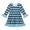 This shift dress offers a ruffle hemline and ruffle cuffs with a casual crewneck. Crafted with stretch.