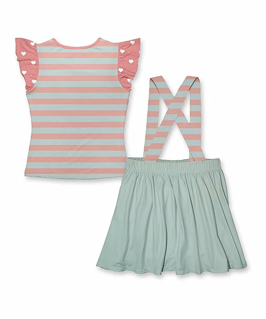 - Includes rose pink and pistachio striped top and light blue panda jumper (two pieces total)