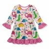 Bolster your beach bunny’s swim-ready collection with this colorful two-piece swimsuit decked out in a playful design and featuring ruffle trim for an adorable finish.