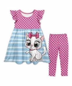 - Includes sky blue and hot pink polka dot cat dress and hot pink polka dot leggings (two pieces total)