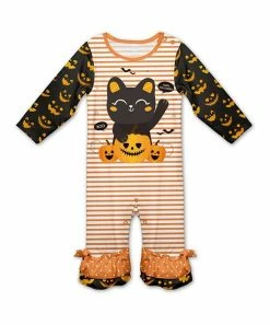 Purr-fect your little kitty’s look for the spooky season with this playsuit that showcases a playful print and ruffly hems. Bottom snaps make dressing and changes all treats and no tricks.