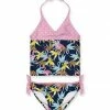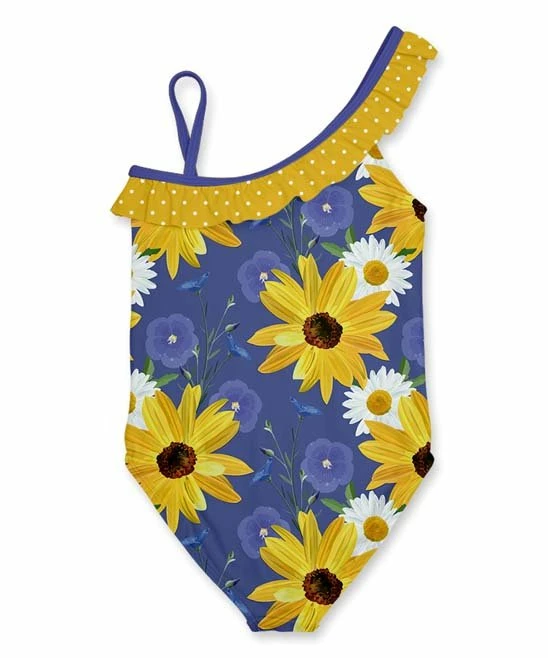 They will be ready for their next beach day with this UPF 50+ swimsuit featuring an asymmetrical neckline.