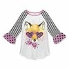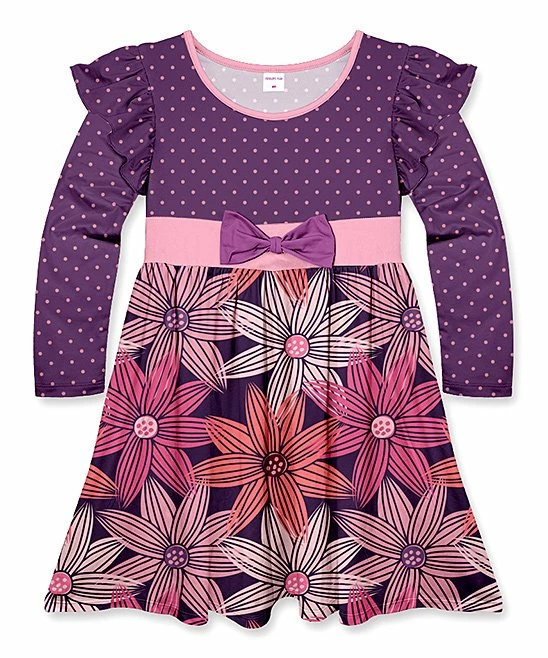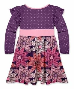 She’ll be ready to dance in this ruffle-topped dress skirted by twirl-able pleats and a sprightly blossom print.