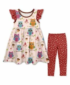 This playful coordinated outfit features an angel-sleeve dress and matching leggings for an easy to pair ensemble.