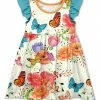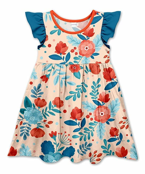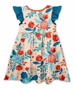 A playful floral print brings peppy style to this angel-sleeve dress.