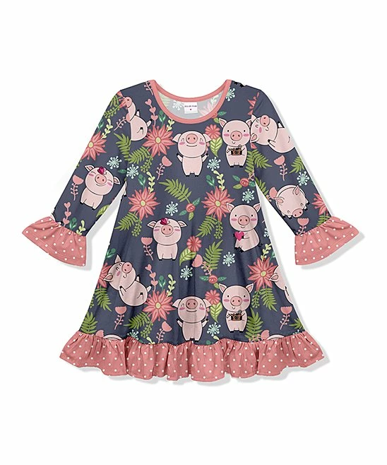 Your little fashionista will fall in love with the twirl-worthy style of this ruffle-laden shift dress.